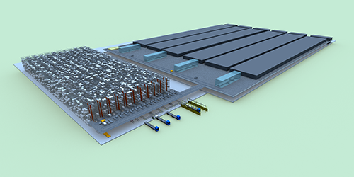 光伏產業在最近幾年時間里得到飛速發展,可分為光伏原材料如多晶硅、玻璃等以及光伏組件。大多數光伏產品是以整托形式出入庫,其重量較重,尺寸較大,且存儲量一般較大,給自動化物流設備帶來一定的挑戰。